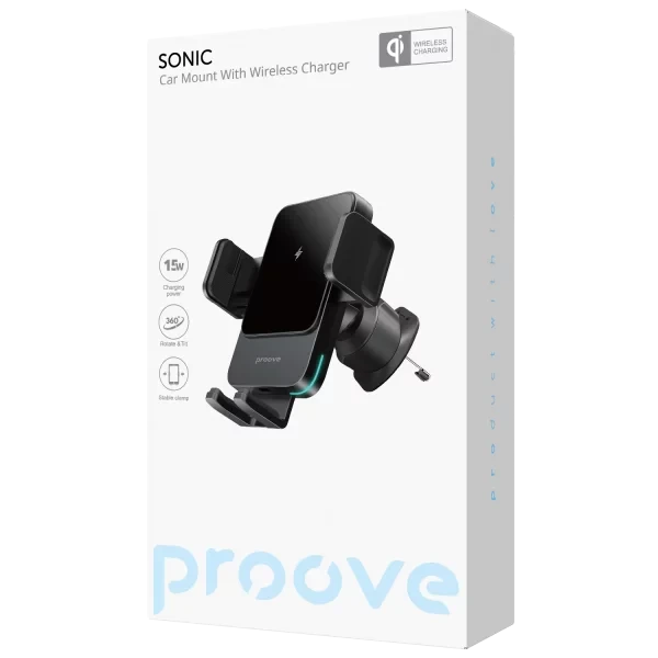 جديدProove حامل سيارة للشحن اللاسلكي Proove Sonic 15 وات باللون الرمادي المعدني (شاحن وايرليس)18,000 د.ع